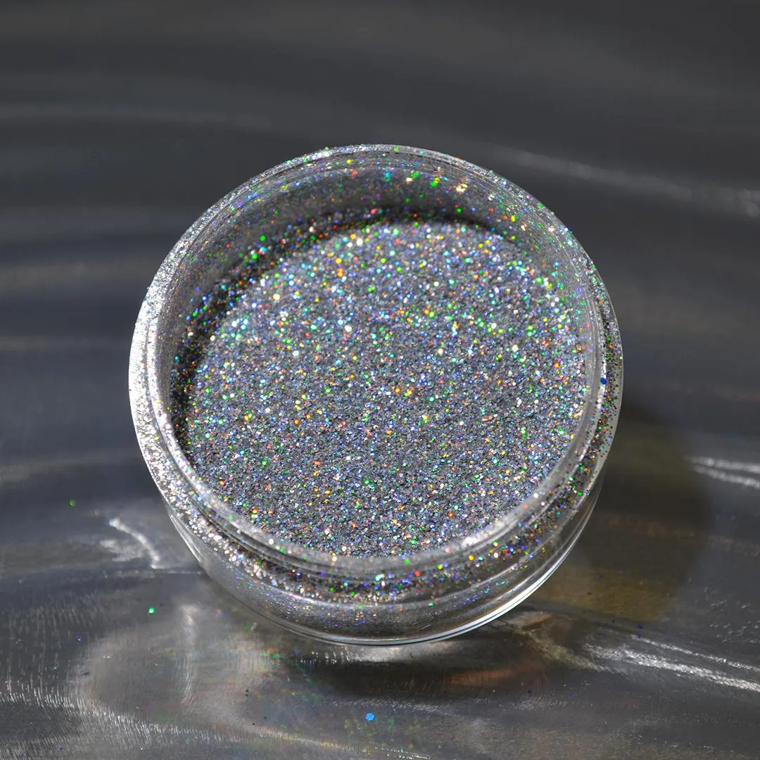 Ultrafine holographic diamond flakes from Spectratek are 1 to 2 microns thick, available in multiple flake sizes, feature a holographic silver color, and are heat, water, and solvent resistant, making them ideal for use in paints, coatings, nail polish, plastic molding, and various other applications across multiple industries.